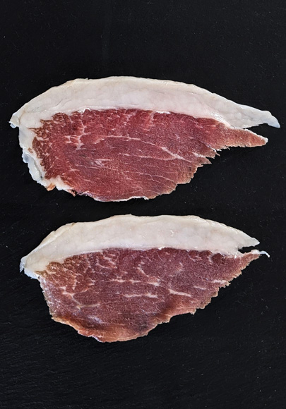 Tento jamón je rovnako ako všetky naše produkty úplne prírodným produktom vyzretým na čerstvom vzduchu bez použitia akýchkoľvek chemických aditív. Vďaka prirodzenému sušeniu zrel v prírodnom secaderi bez urýchľovania v klimatizovaných komorách. Obsahuje iba mäso, soľ a čas.